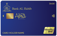 Cards | Signature Debit Card | Visa Debit Platinum | Visa Debit Gold | Visa Debit Silver | AL Habib Digital Account Classic | AL Habib Digital Account Gold | UnionPay Debit | UnionPay Apna Debit | PayPak Debit |